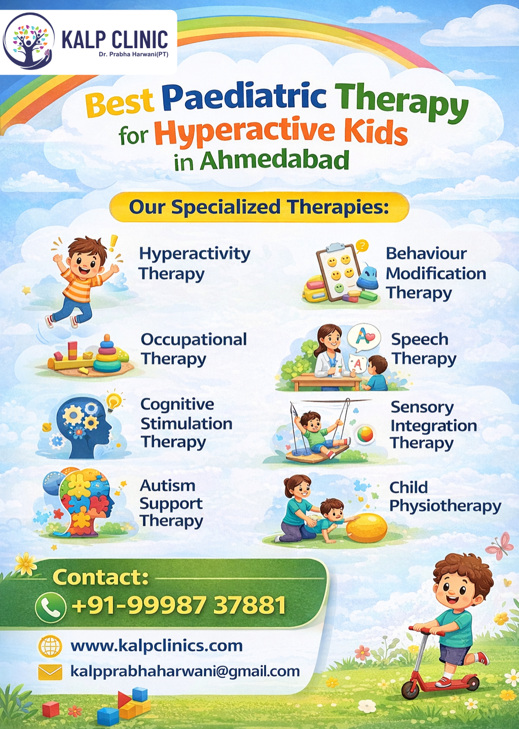 If you are looking for the best paediatric therapy for hyperactive kids in Shyamal, Ahmedabad. Kalp Clinic offers specialized care designed to support children with attention and behavioral challenges. Their expert therapists use evidence-based techniques to improve focus, emotional regulation, and overall development in a child-friendly and supportive environment.