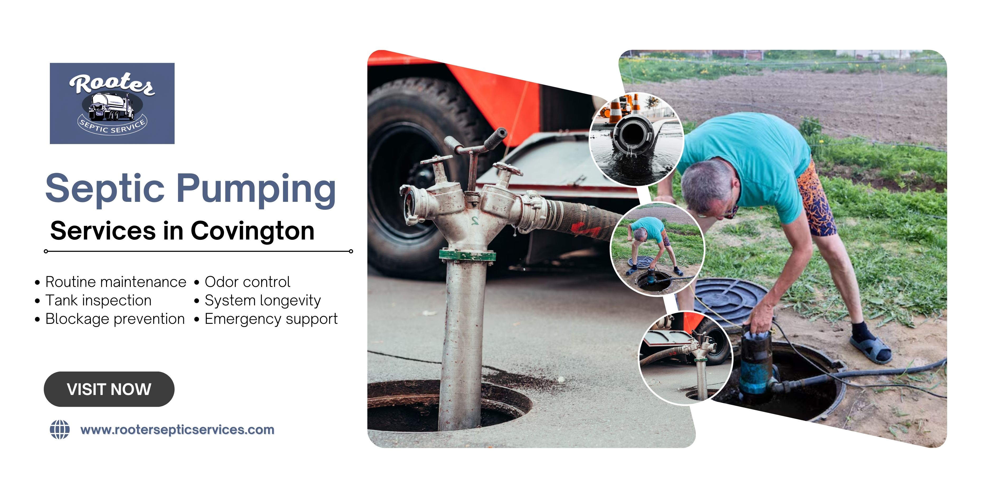 This banner shows why scheduling regular septic pumping in Covington is essential for a healthy home. By removing built‑up sludge before it reaches the drain field, professionals prevent backups, foul odors, and landscaping damage. Routine service keeps wastewater flowing smoothly, protects your plumbing, and extends system life so you avoid expensive emergency repairs and full replacements.