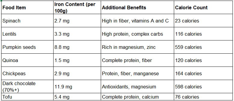 Iron-Rich Foods Comparison Table