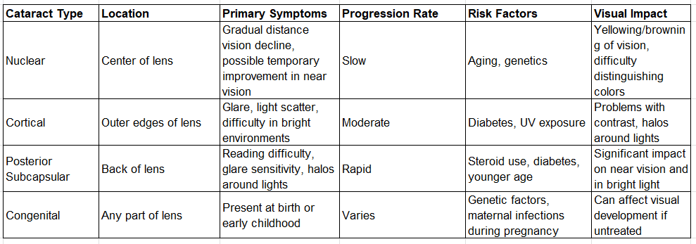 Common Types of Cataract and Their Characteristics