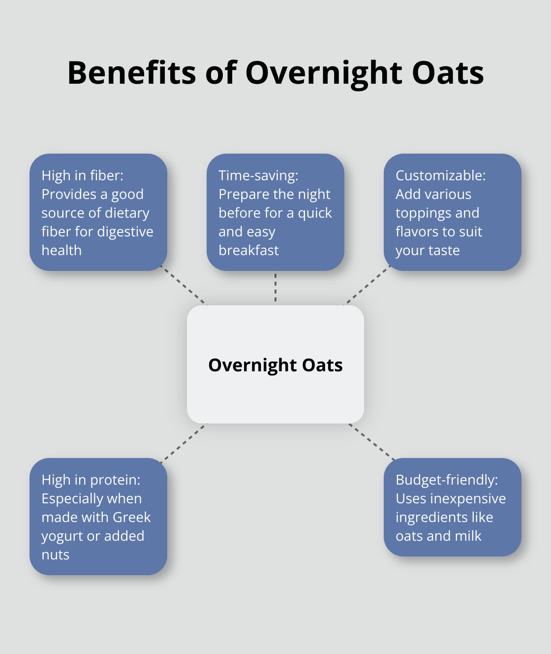 Overnight oats revolutionize busy mornings: This no-cook method involves soaking oats in milk or yogurt overnight, resulting in a creamy and satisfying breakfast. To keep costs down, buy oats in bulk and use seasonal fruits for toppings. Overnight oats are high in fiber, provide a high-protein breakfast, and will keep you full all morning. I recommend organic oats as they are not supposed to be processed with glyphosate.
