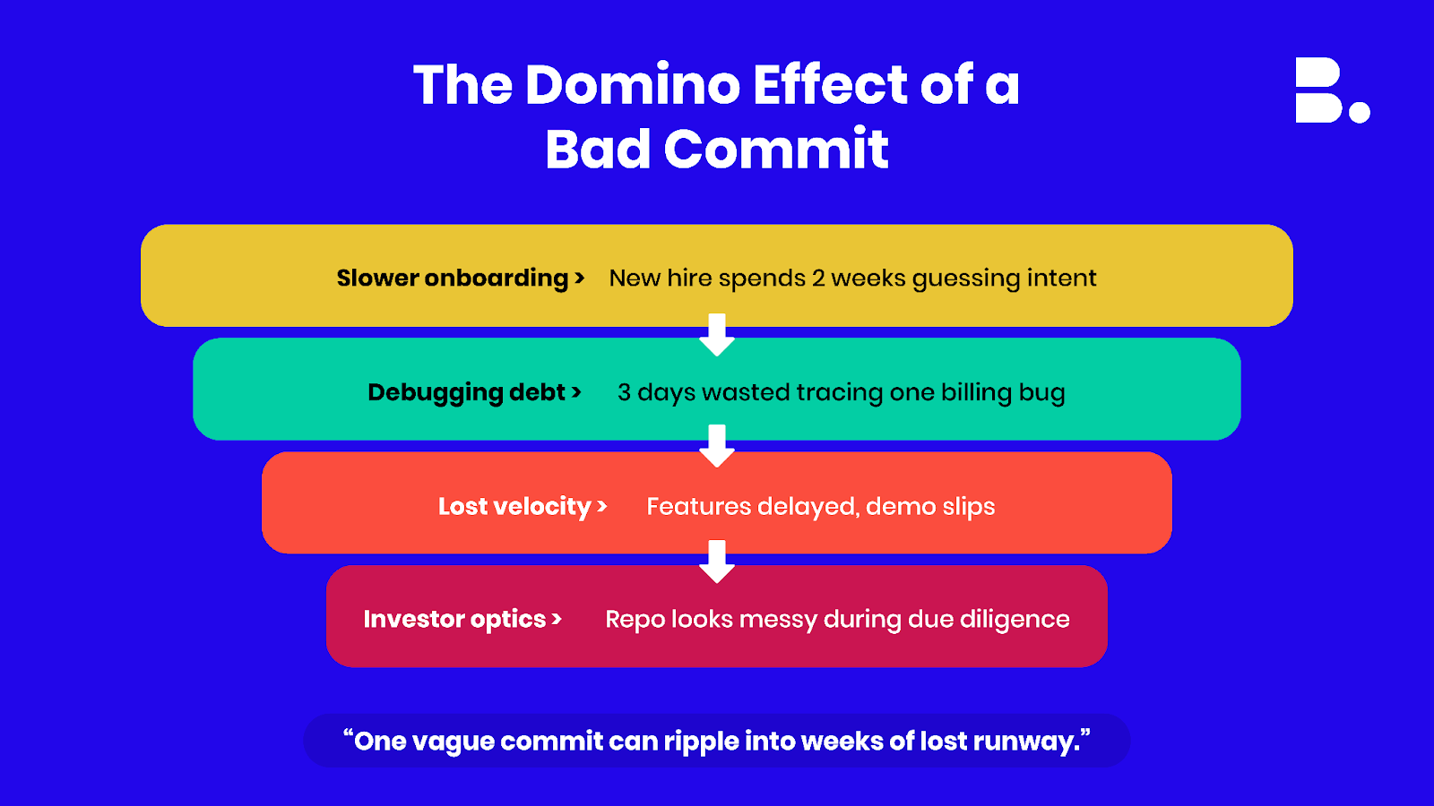Here, lack of commit discipline isn’t just a technical liability, it’s a business risk that threatens valuation, compliance, and growth.