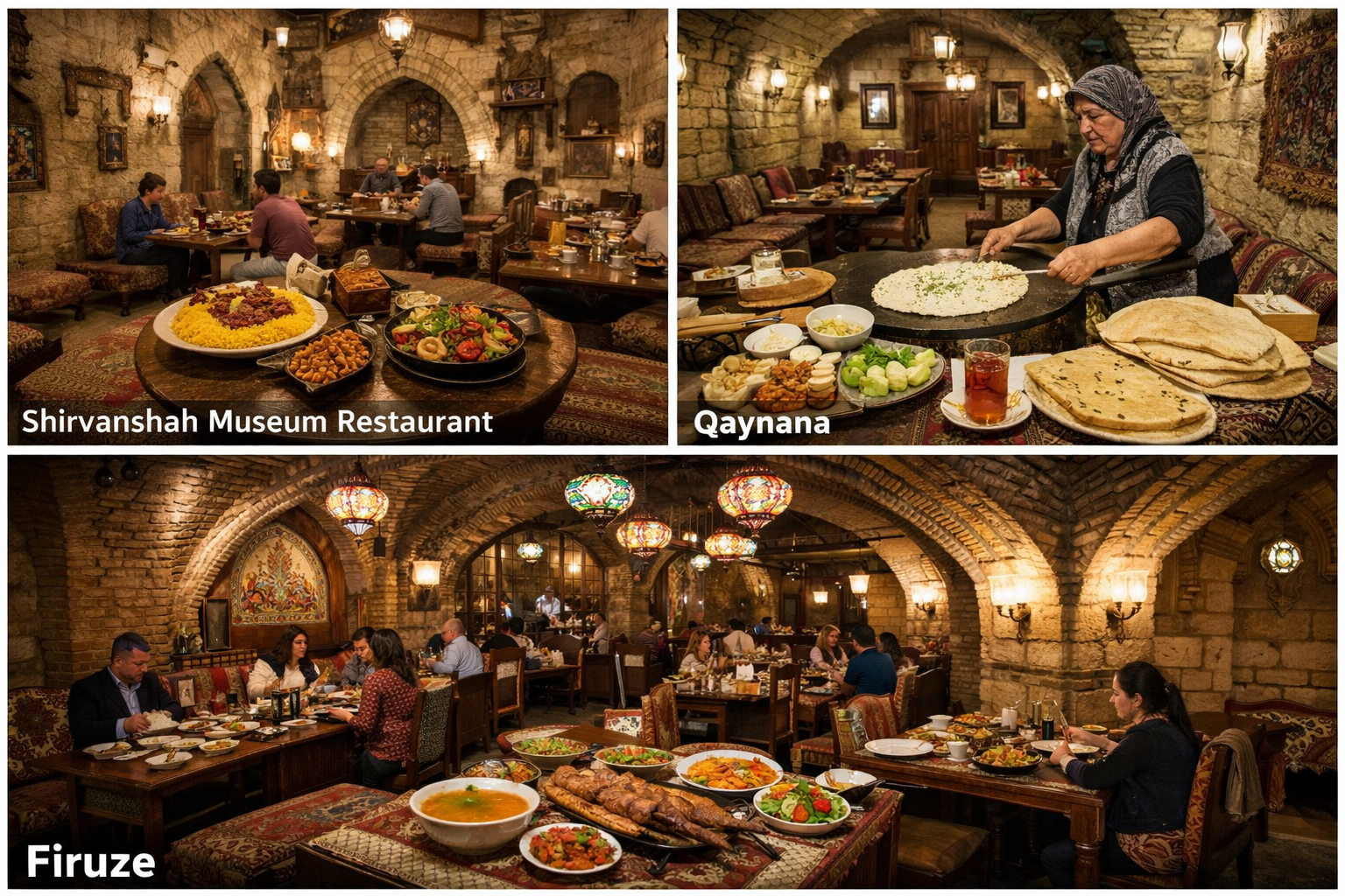 - Qaynana: Located in the Old City, it is famous for its authentic Azerbaijani breakfast and Kutabi (herb-stuffed pancakes).